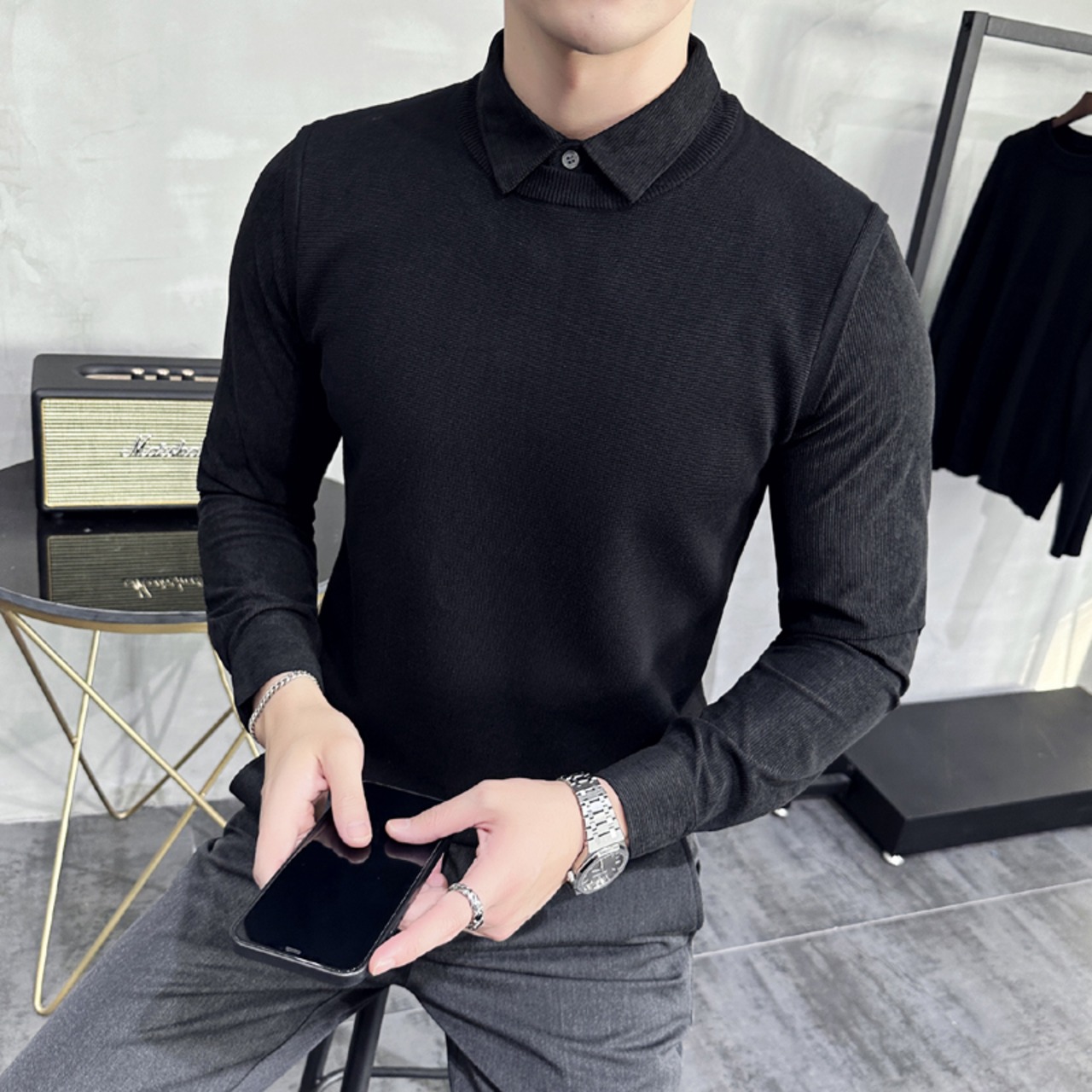 新作登場⭐ 洗練されたデザインと快適な着心地を実現した「秋物・グレーウォールスタイル・フェイクツーピースセーターメンズ・ソリッドカラーセーターMYHP」が新たにラインアップに加わりました!このセーターは、トレンド感溢れるフェイクツーピースデザインが特徴で、秋のカジュアルスタイルをおしゃれに演出するアイテムです。シンプルながらも存在感のある一着です。