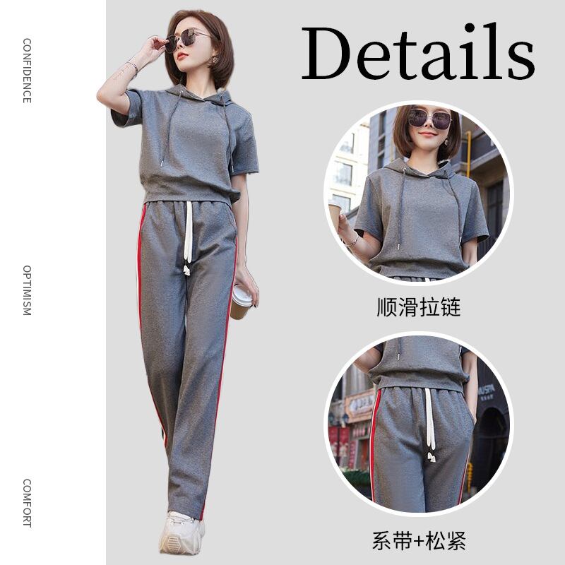 新作登場⭐ スタイリッシュなデザインの「ファッションスポーツスーツ女性夏半袖フード付き上着おしゃれなワイドパンツ痩せカジュアル純綿ランニング2点セット」が新たにラインアップに加わりました!このスポーツスーツは、快適な純綿素材を使用しており、夏のランニングやカジュアルな外出にぴったりのアイテムです。フード付きの上着とおしゃれなワイドパンツの組み合わせが、スタイリッシュでありながら動きやすさを実現します。