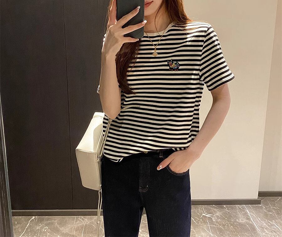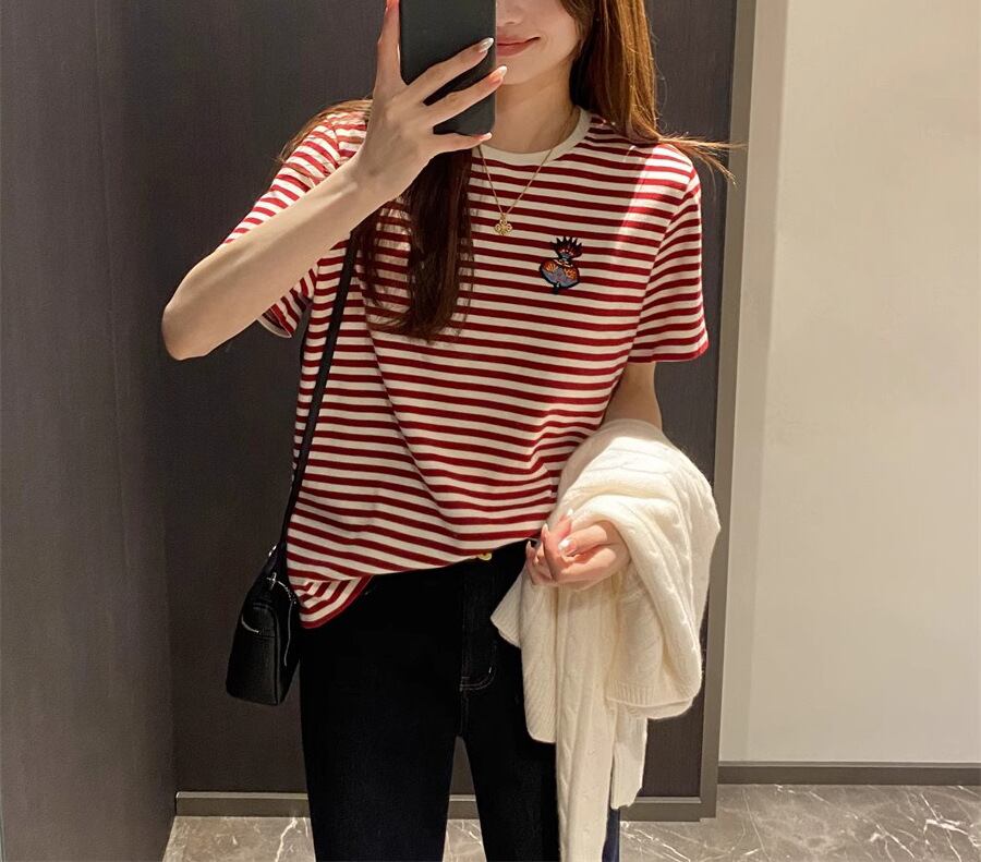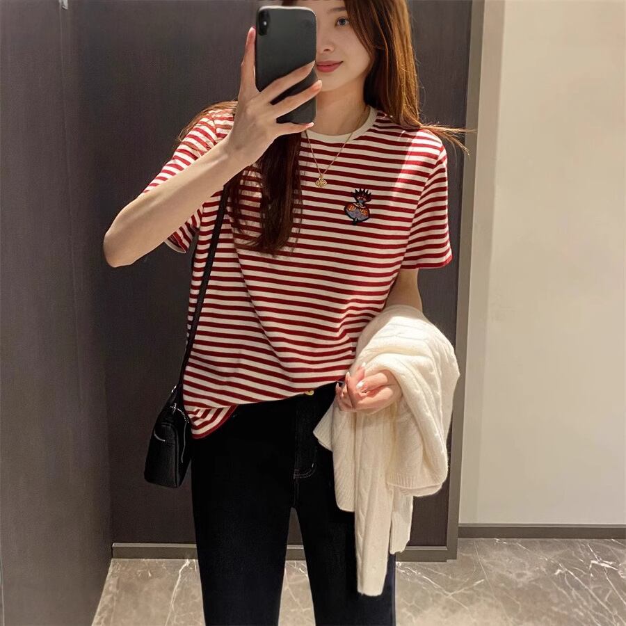 新作登場⭐ 「【新作】春夏 新着 レディース ピマコットン 刺繍入り 赤ストライプシャツ レディース ボトムス 半袖 Tシャツ トップス レディース」が新たにラインアップに加わりました!このアイテムは、優れた通気性と美しいデザインを兼ね備えた、春夏シーズンにぴったりの一着です!