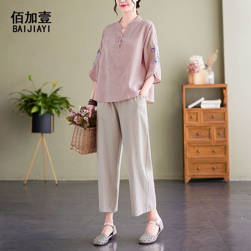 この「【大人気セットアップ】中高年女性、ママのためのおしゃれな夏服、綿麻スーツ」で、素敵な夏の日々を心ゆくまで楽しんでください!