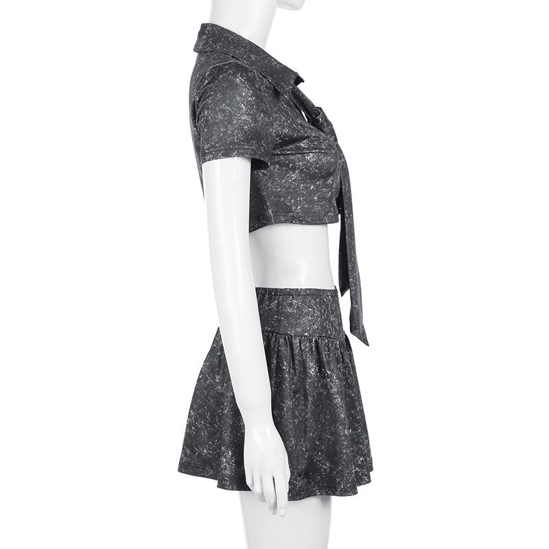 この「【欧風人気⭐】レディース 新品 ウォッシュ加工 古着シャツ タイトップ へそ出し セクシー Aライン スカートスーツ ツーピーススーツ」で、スタイリッシュでセクシーなコーディネートを楽しんでください!