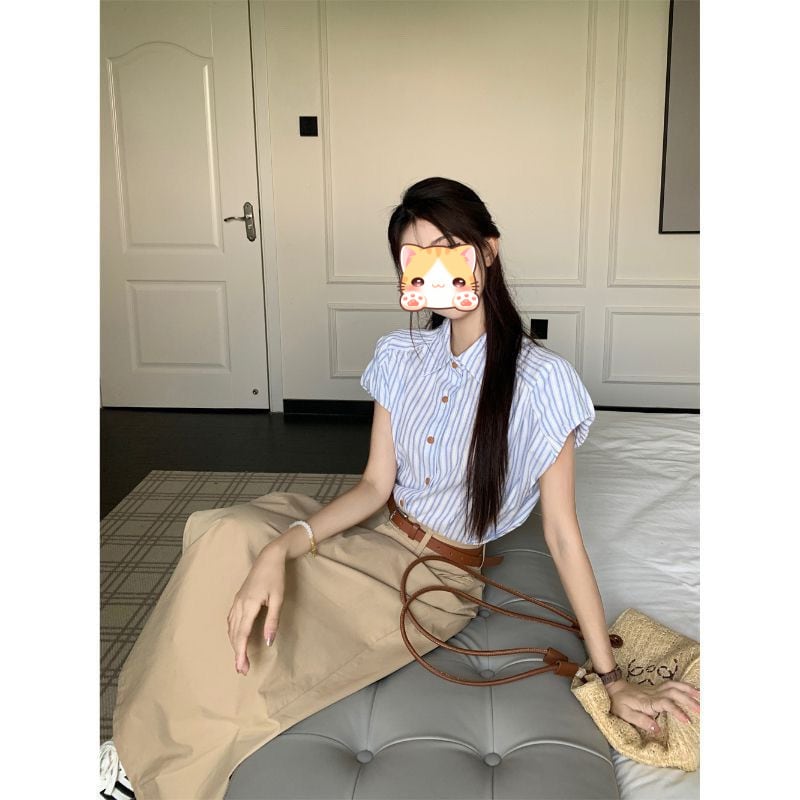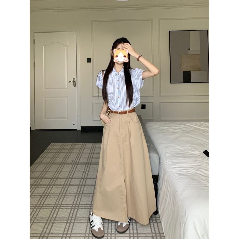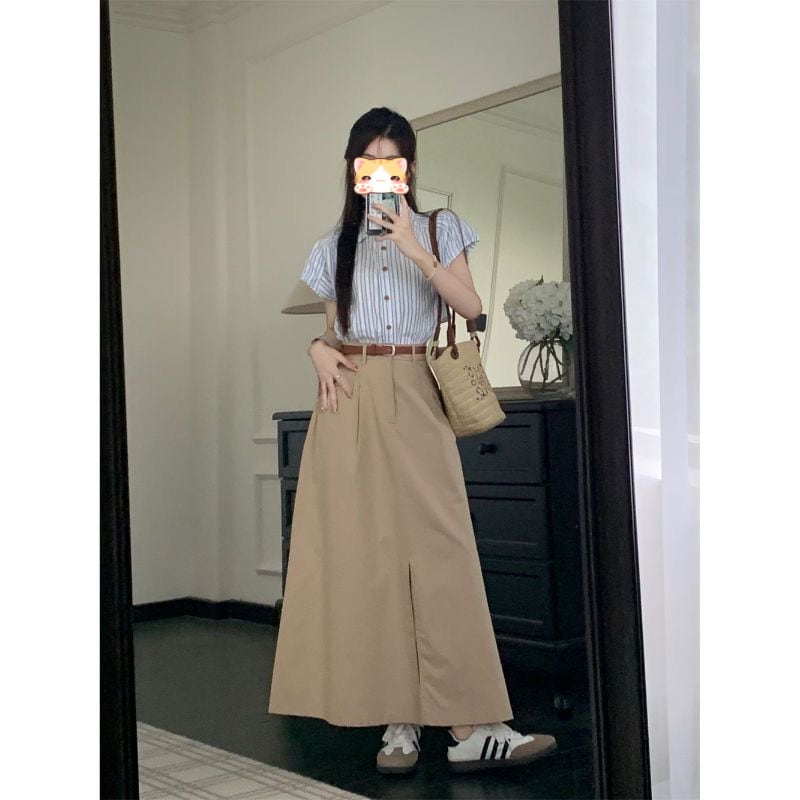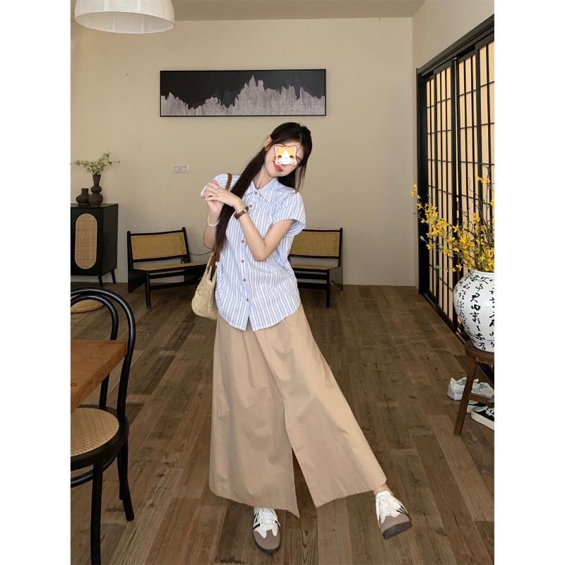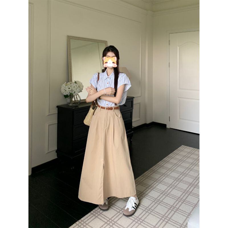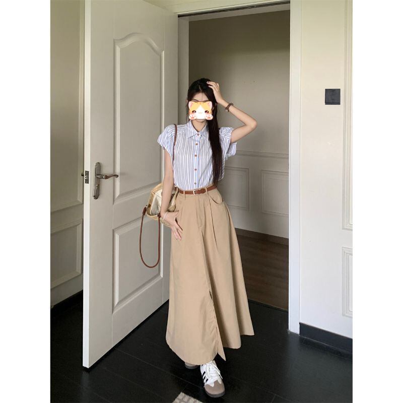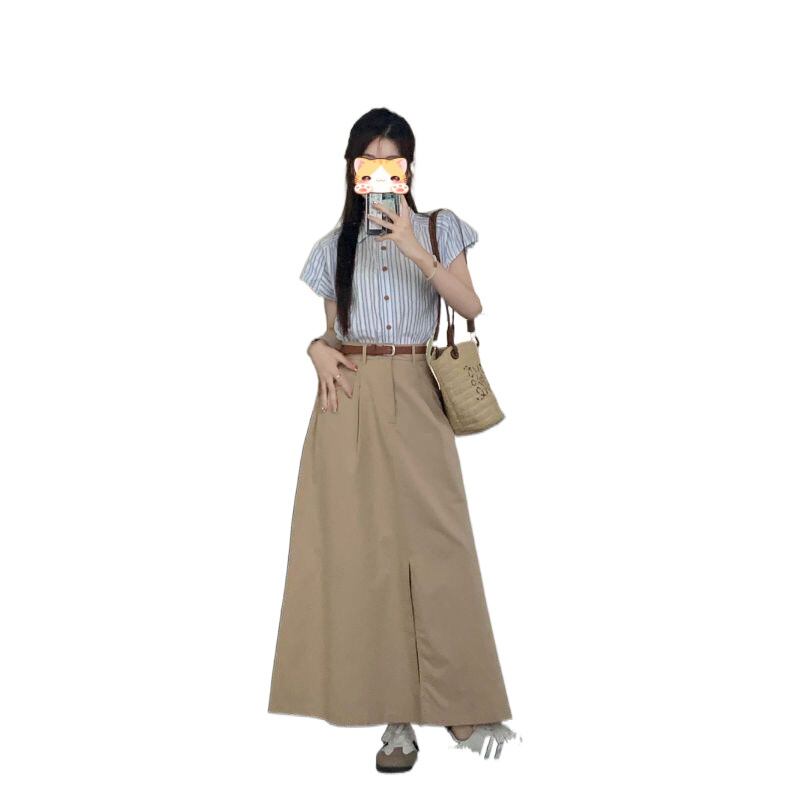 この「【新作】レディースファッションスーツ ストライプシャツ 夏用プチハイウエストスリットスカート ロングスカート ハーフスカート ツーピーススーツ」で、夏のおしゃれを楽しんでください!