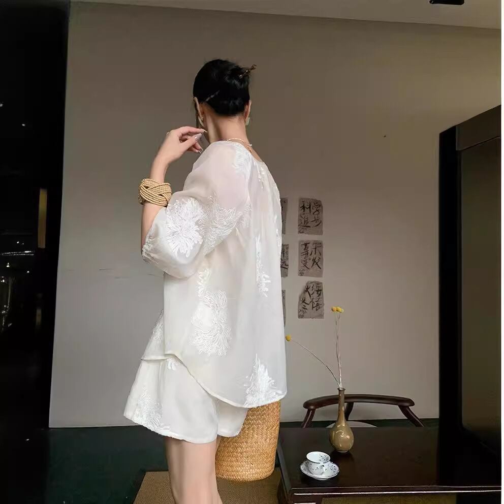 この「【新作】新しい中国の民族風ファッション ツーピーススーツ 女性の夏の新しい刺繍のトップススカート ワイドレッグショーツ」で、夏のファッションを存分に楽しんでください!