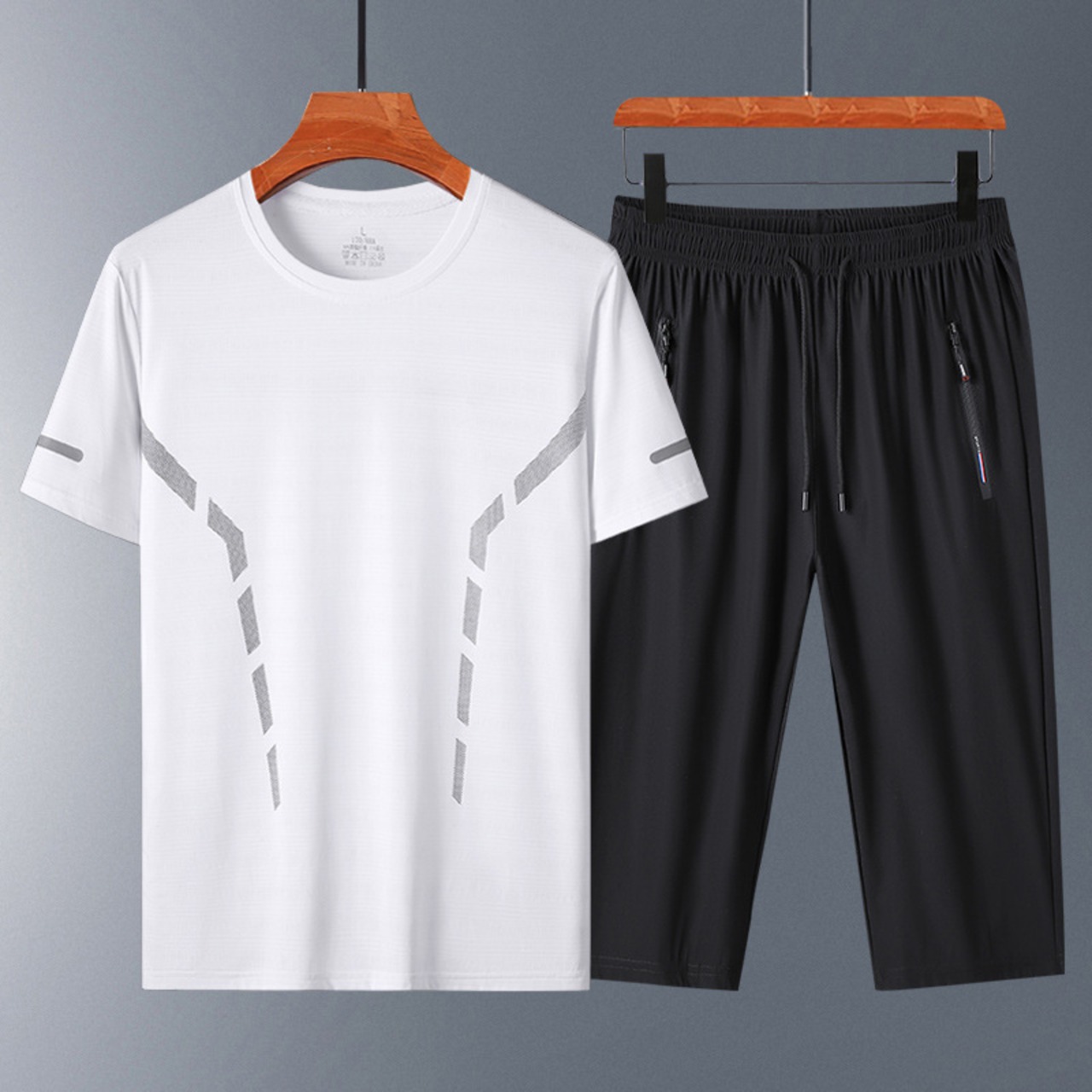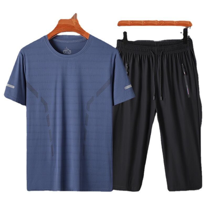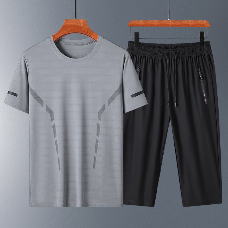 この「【大人気】夏のメンズカジュアル半袖スポーツスーツ中高年アイスシルク速乾Tシャツクロップドパンツツーピースパパスーツ」で、快適でスタイリッシュな夏のコーディネートを楽しみませんか!