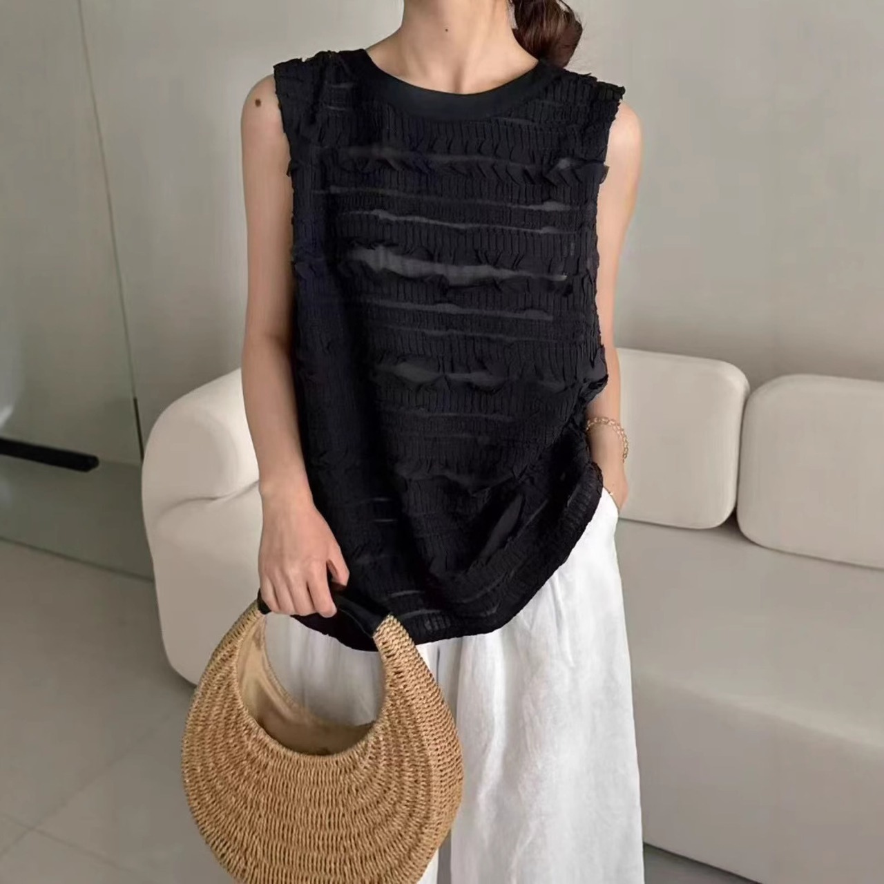 この「【大人気】プリーツベストレディースヨーロピアンステーション2025夏新スタイルファッショナブル多用途ルーズスリムノースリーブウエストコートベストトップ」を身にまとい、多彩な夏のスタイルをぜひお楽しみください!