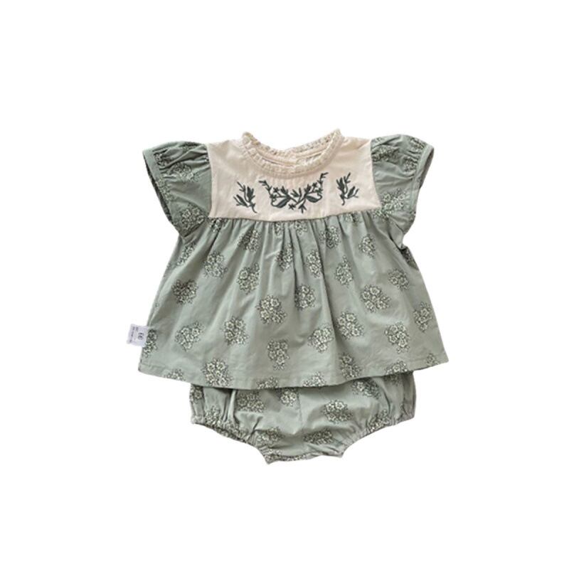 この【超オススメ】幼児用夏服、刺繍入り花柄半袖トップスとショーツ、レースカラーのツーピーススーツ付き女の子用で、素敵な夏のスタイルを楽しんでください!