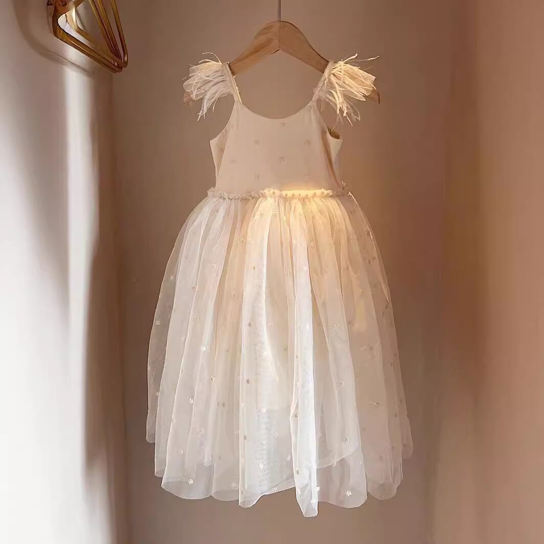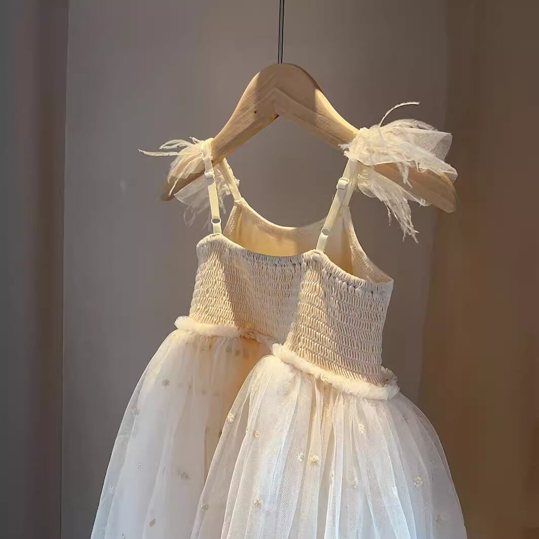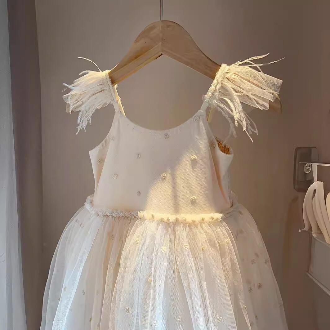 女の子にぴったりな夏の新作、重工羽根刺繍メッシュスカートが登場!軽やかで華やかなデザインが、特別な日のお出かけをさらに素敵に演出します。