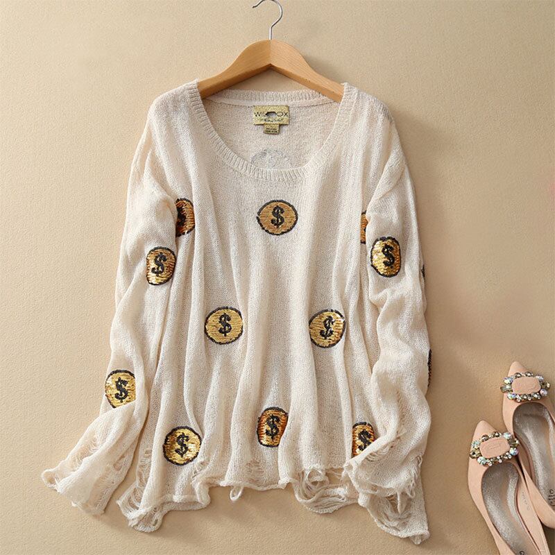 【新作】ヨーロッパとアメリカの国境を越えたルーズホールセーターエアコンセーター日焼け止めトップ刺繍ビーズファッションセーターが登場です!
