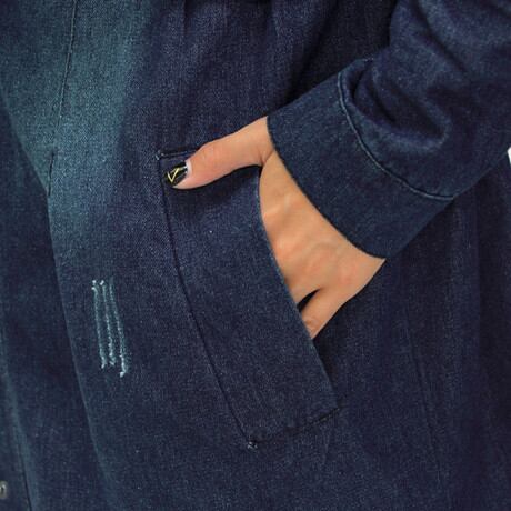 ●シンプルなデザインながら個性的なカットがあり、どんなボトムスとも調和し、コーディネートの幅を広げます。デニム素材が心地よく、柔らかな着心地で、肌寒い日や風の強い日はしっかりとガードしてくれることでしょう。普段のカジュアルスタイルを一段と引き立てるアイテムです。