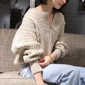 【大人気】2021新作 ゆったりしたコートの白いVネックの太い毛糸の麻花のセーターのコートが登場です!