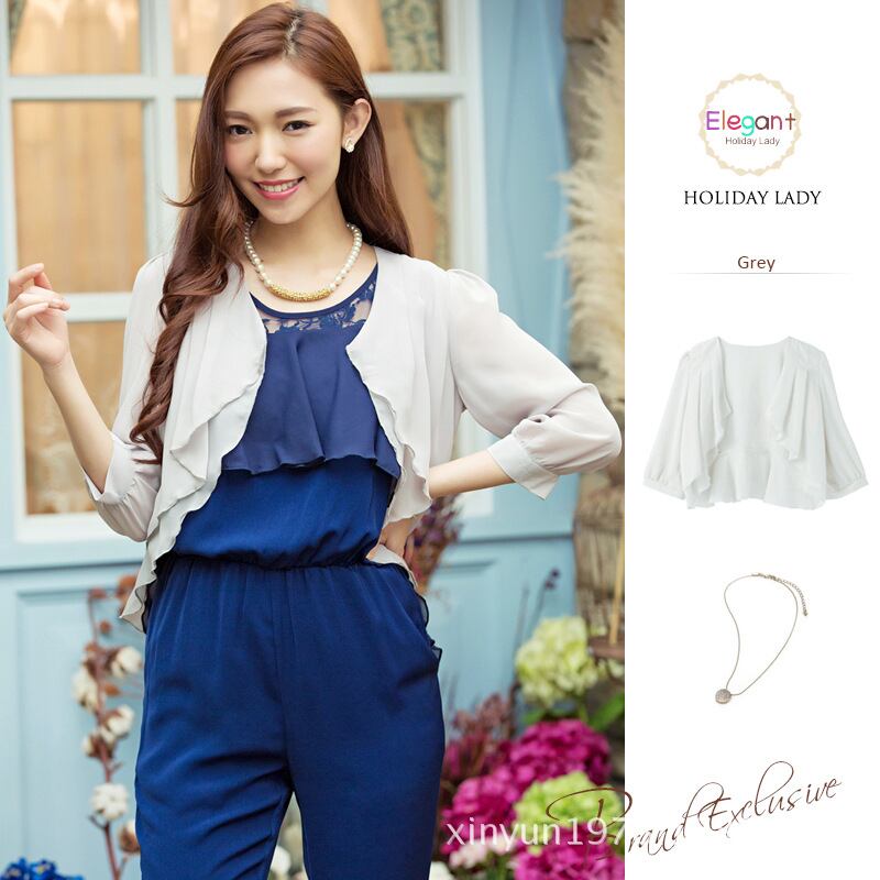 【大人気】披露宴などにもぴったり!早春の新作、甘めの折り返し肩で腕周りをすっきり見せるオールマッチシフォンスリーブのスモールカーディガンジャケットトップスが登場です!