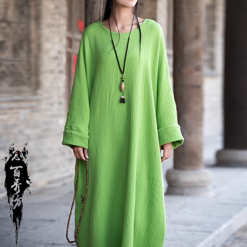【最新作】2025年春夏綿麻婦人新商品 民族風ゆったり禅風二重鄒婦人ドレスローブが登場です!