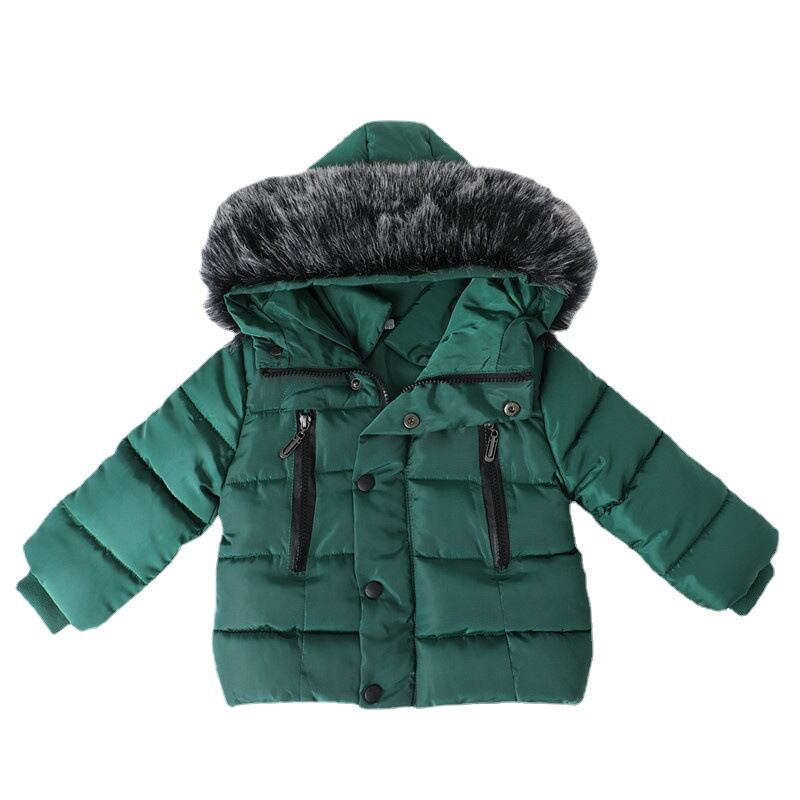 このかわいいフード付きダウンジャケットで、寒い季節も楽しく過ごしてみませんか?お子様の冬のおしゃれを華やかに彩る、素敵なアイテムです!