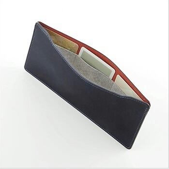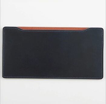 アクセントのヌメ革にスリッドを入れ、名刺や切符、レシートなど、ちょっとしたものを挟むのに便利です。