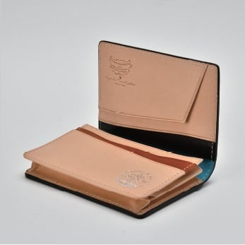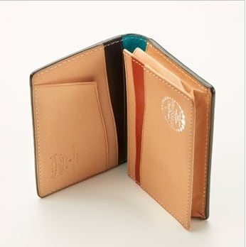 裏地は美しい織り目と一目瞭然美しい革肌に加えて4色の革との配色が美しいラインにより一層アート性と