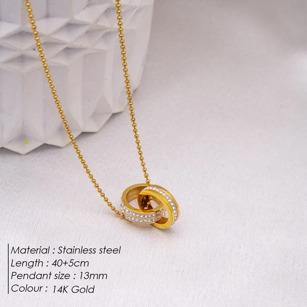 このネックレスは、高品質なゴールドとステンレススチールを使用しており、耐久性がありながらも美しい輝きを放ちます。クロスボーダーデザインとダブルリングの組み合わせは、ユニークでありながらもエレガントな印象を与え、あなたの個性を引き立てます。