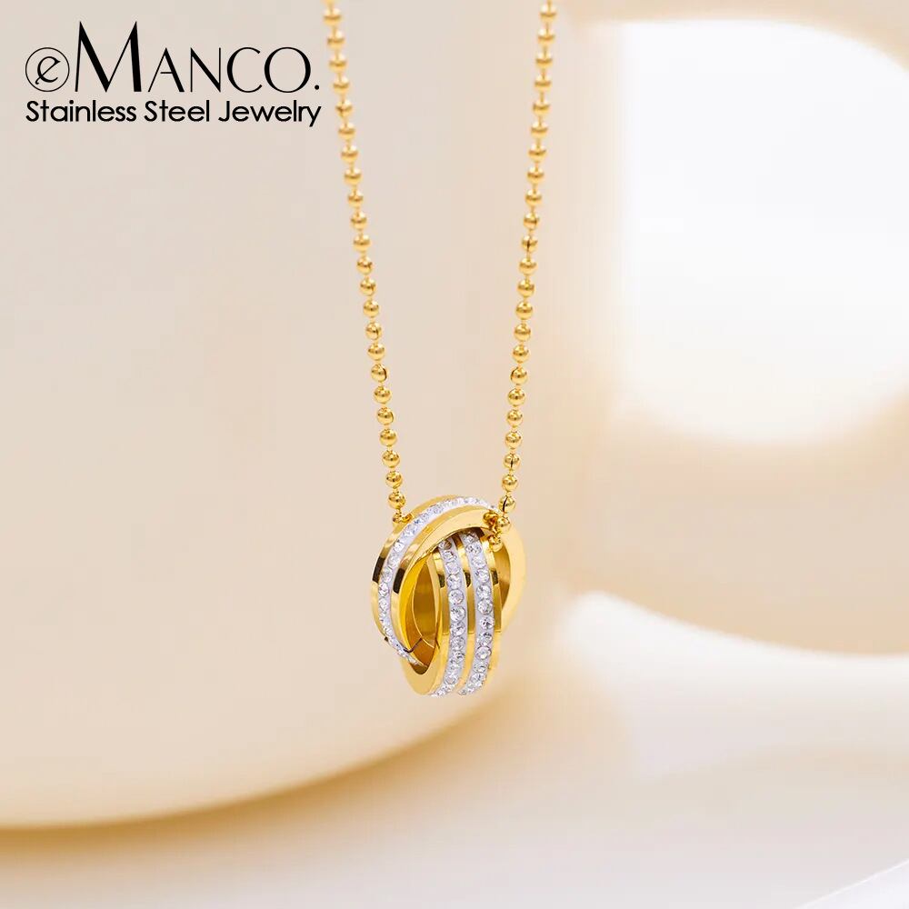 【かわいい・大人気】Amazon人気商品・Emanco 高級クロスボーダー・魅力的なニューインスタイルネックレス・ダブルリング・ダイヤモンドペンダント・ゴールド&ステンレススチール・ライトラグジュアリーネックレス・女性用 | htgpartners