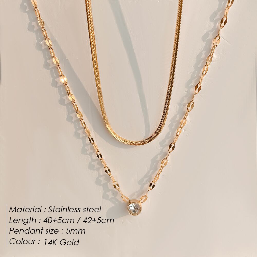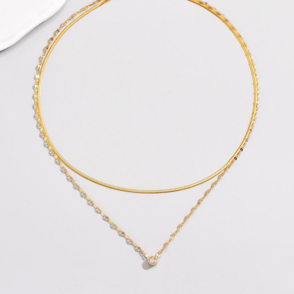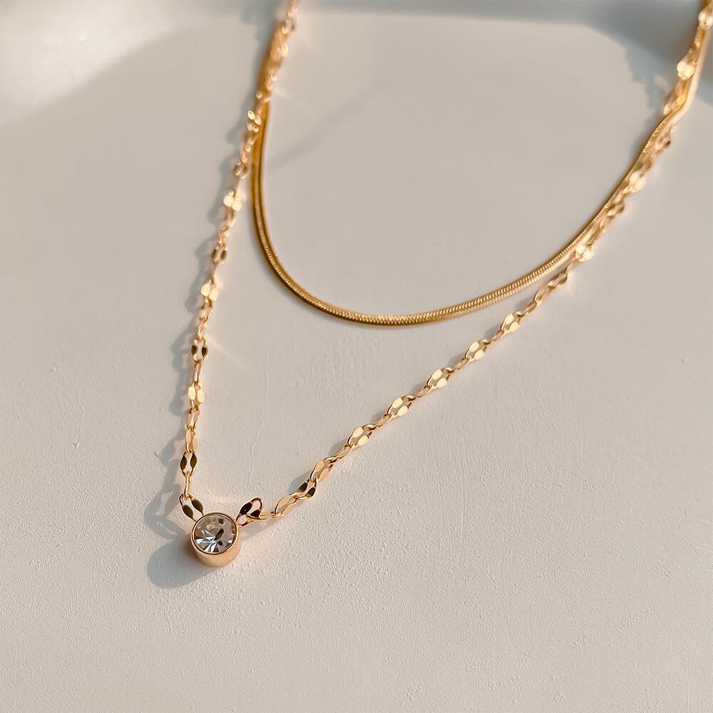 【海外人気】ホットセールAmazon人気商品・ クロスボーダー INS シンプルな二層スネークボーンリップチェーン・ステンレススチールネックレス・スタイリッシュなニッチデザインラインストーン付き | htgpartners