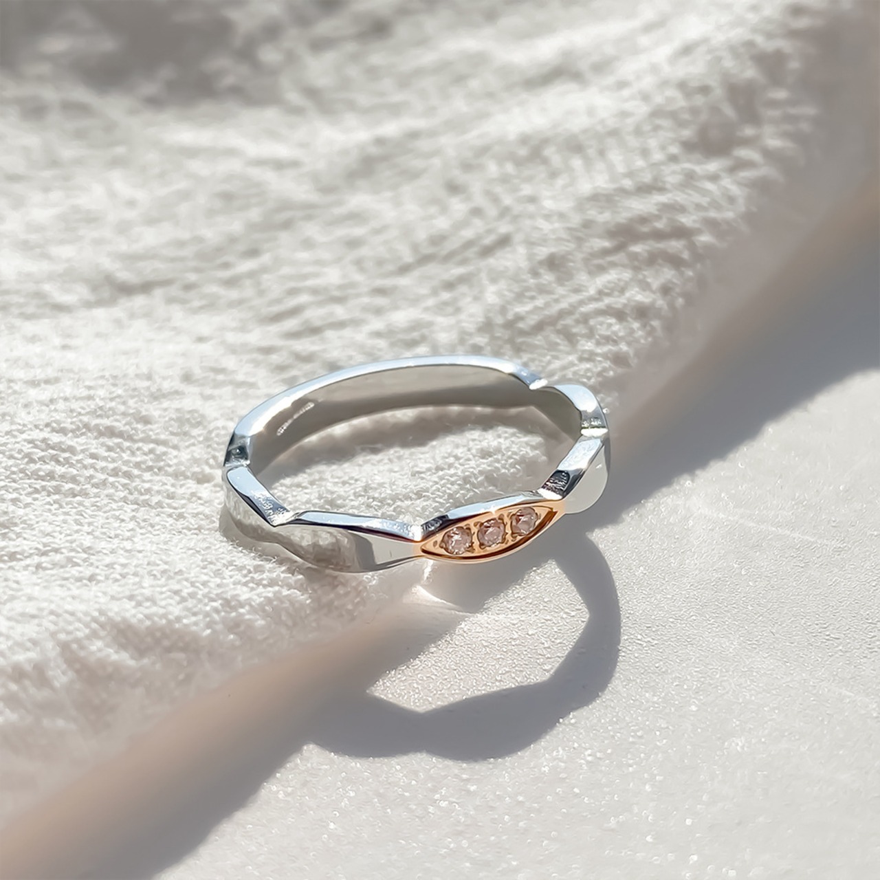 繊細なマイクロ象眼細工が施されたデザインは、その独自の美しさであなたの個性を引き立てます。特にラインストーンの煌めきが、シンプルながらも豪華な印象を与えるため、日常使いはもちろん、特別な場面にもマッチします。