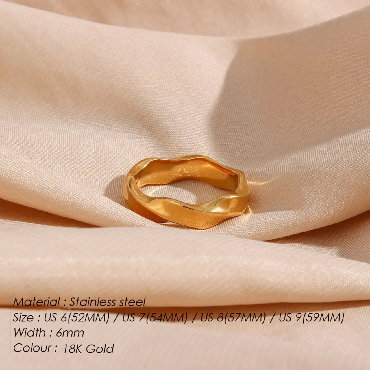 この『【人気】ジュエリーステンレススチール・金メッキ幾何学模様ウォーターリップル女性用リング』で、あなたのスタイルを華やかに演出し、新たな魅力を手に入れてみませんか?ぜひお手元に!