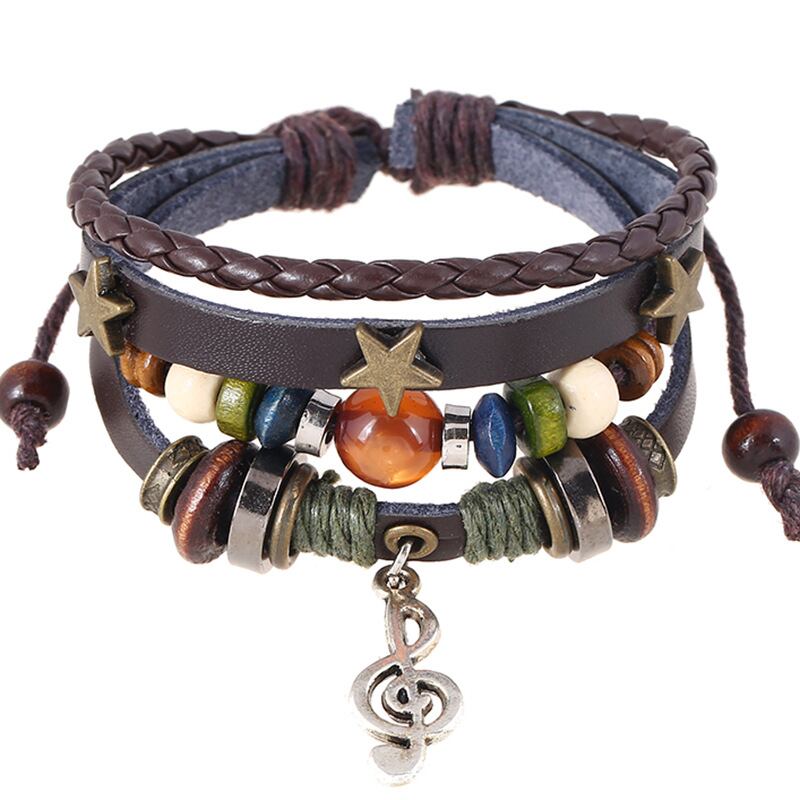 クロスボーダーの新作アクセサリー、シンプルな多層ビーズ革ブレスレットが登場しました!音符ペンダントが付いたデザインは、音楽祭や普段使いにもぴったりの個性的なアイテムです。革製のブレスレットは強度があり、長期間お楽しみいただけます。