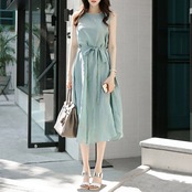 このノースリーブワンピースは、コットンとリネンの高品質なキャンバス素材を使用しており、心地よい着用感を保証します。肌触りが柔らかく、暑い季節でも快適に過ごせること間違いなし。イレギュラーロングスカートデザインが、動くたびに美しいシルエットを生み出し、エレガンスを演出します!