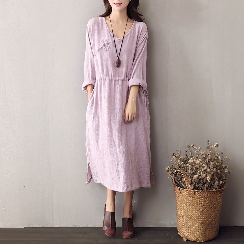 この『【大人気】2023秋の新しいレトロな文芸 Vネックの長袖のバックルのゆったりした底の長いスカートの女性の綿の麻のワンピース』をぜひお試しください。おしゃれで快適なこのアイテムが、あなたの秋コーデをさらに素敵に彩ってくれることを願っています!