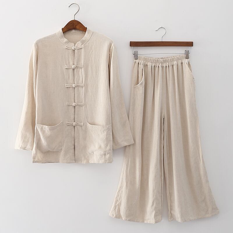 ## 新作!【綺麗目シルエット】女性の秋の新しい中国風プレートトップコットンとリネンの女性のレトロなカジュアルなスーツティードレスシャツ