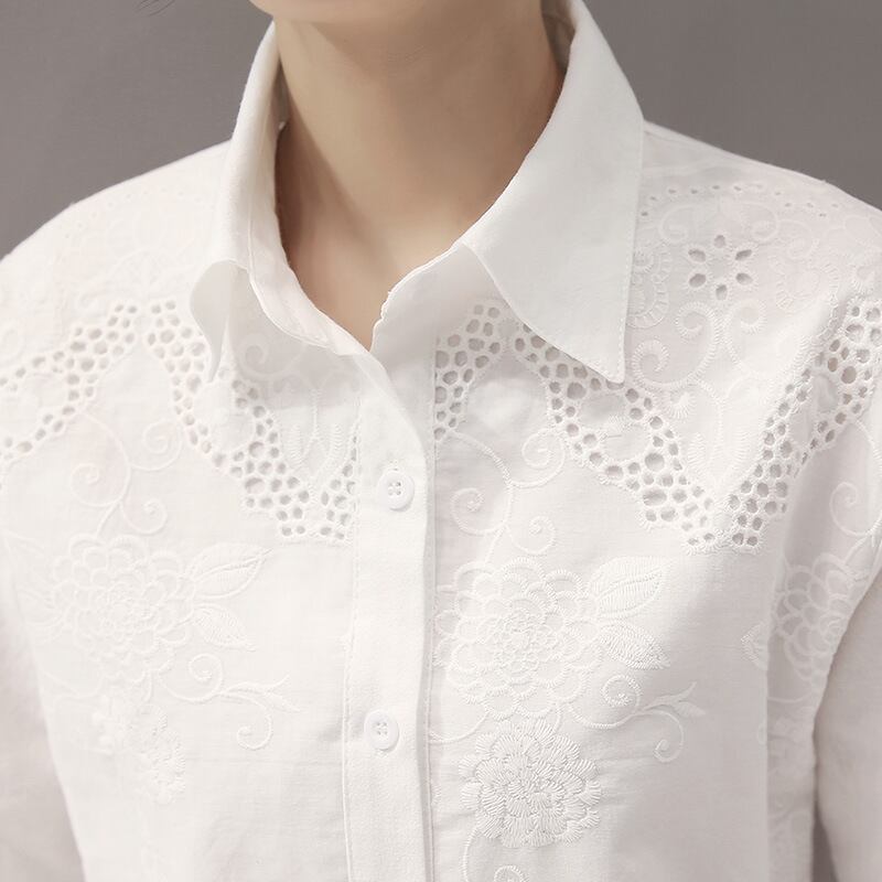 ## 新作!【上質な刺繍】メーカー直販 刺繍白シャツ 女性長袖 2023春装新刺繍上着気質軽熟純綿シャツ
