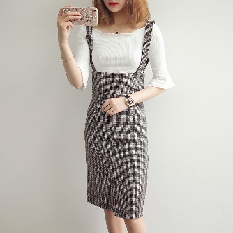## 新作!【綺麗目シルエット】秋装新型 レトロ スリム見え 黒白格背帯カジュアル中長ワンピース