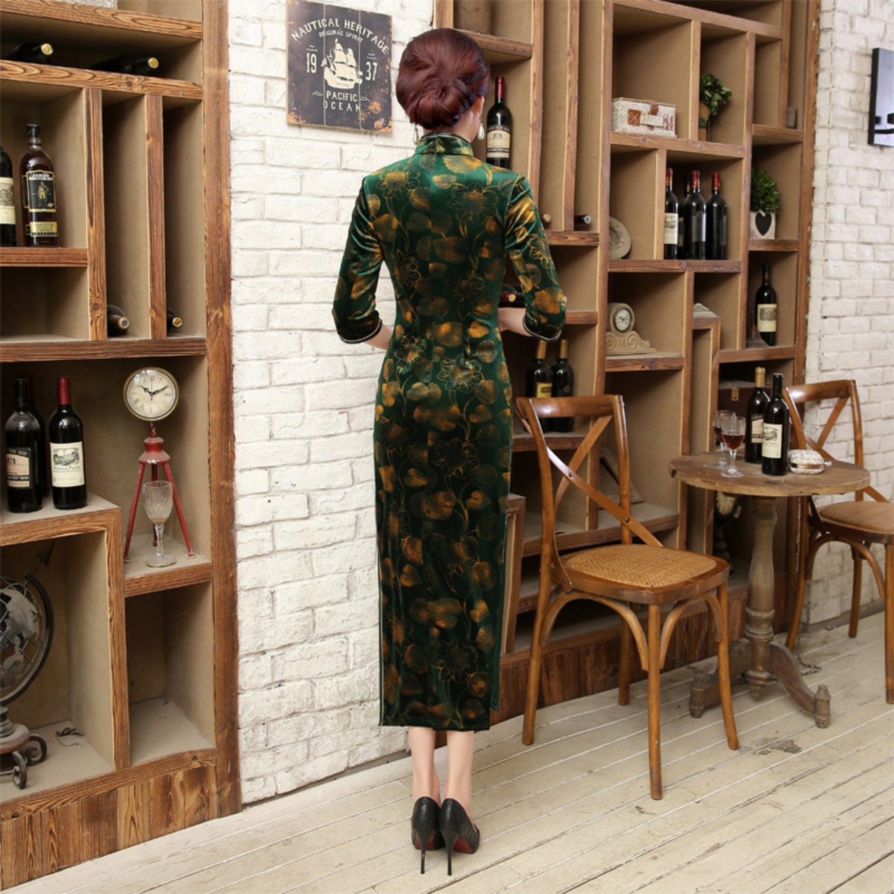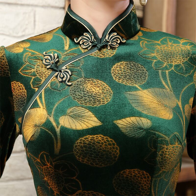 ## 新作!【最新作】ベルベットチャイナドレス 大きいサイズ ロング 秋冬 七分袖 結婚式 ウェディング マザードレス チャイナドレス 刺繍 中高年