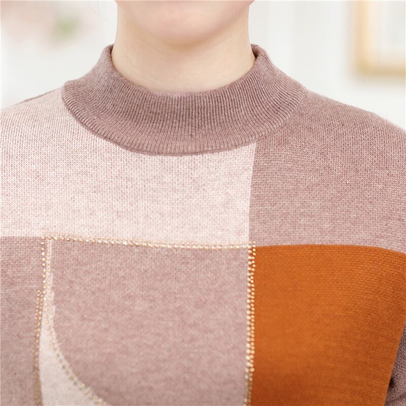 ## 新作!【売れ筋】新しい秋と冬の厚手の女性の中高年ニットセーター半襟長袖ファッショナブルな母親の底シャツトップス