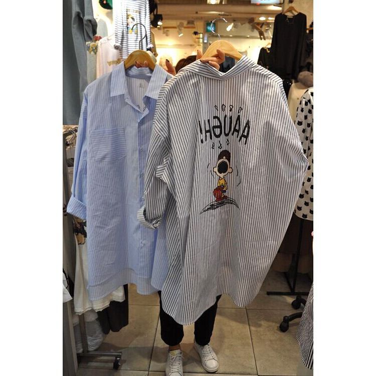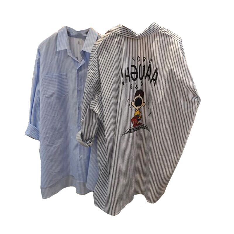 ## 新作!【オーバーサイズ】韓国東大門2023春の新型 韓国版女性縦縞アニメプリント長袖シャツ