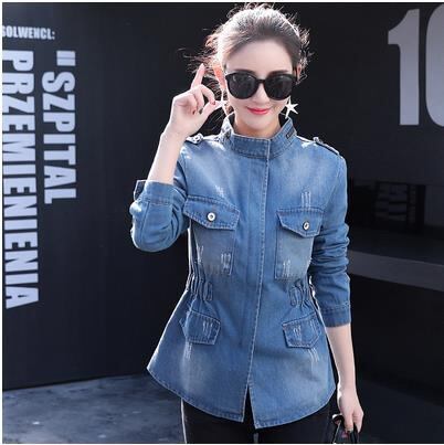 ## 新作!【最新作】ヨーロッパとアメリカの外国貿易セレブスタイルウォッシュ加工ダメージ加工スリムフィットレディースデニムジャケット