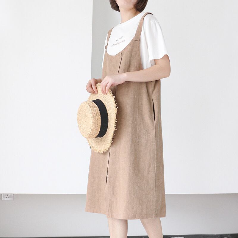 ## 新作!【最新作】厳選された春夏新作スリットサイドポケットコットンリネンルーズストラップドレスロングスカート