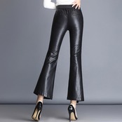 ## 新作!【大人気】2022年秋冬新作レザーパンツスリムフィットレザーパンツプラスベルベット厚手フレアカジュアルパンツトレンドレディースパンツ