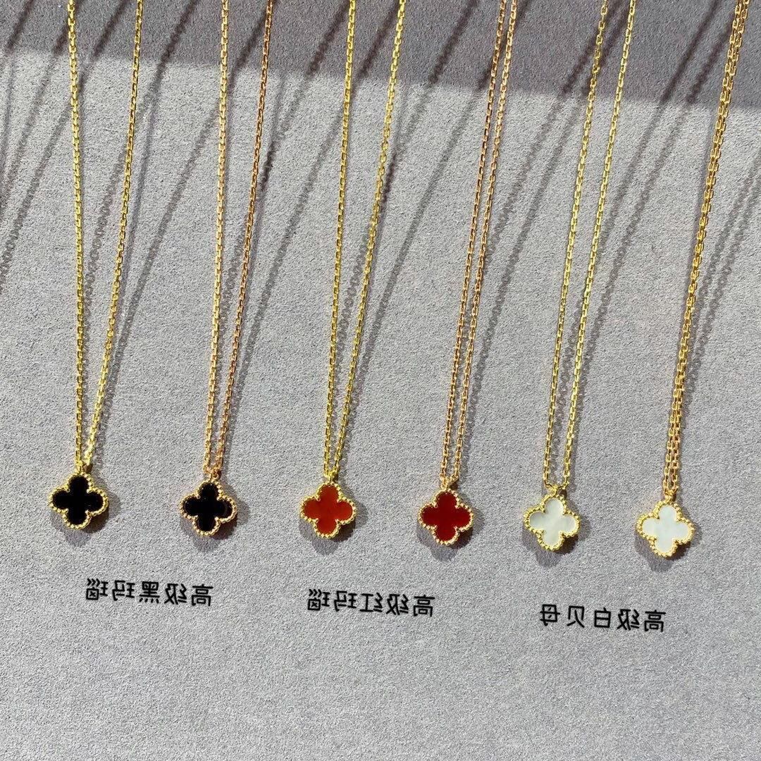 ## 新作!【大人気】ラッキーフラワー 鎖骨ネックレス女性レッドカルセドニー18Kローズゴールドヴァンファミリーミニ四つ葉のクローバーペンダントギフト