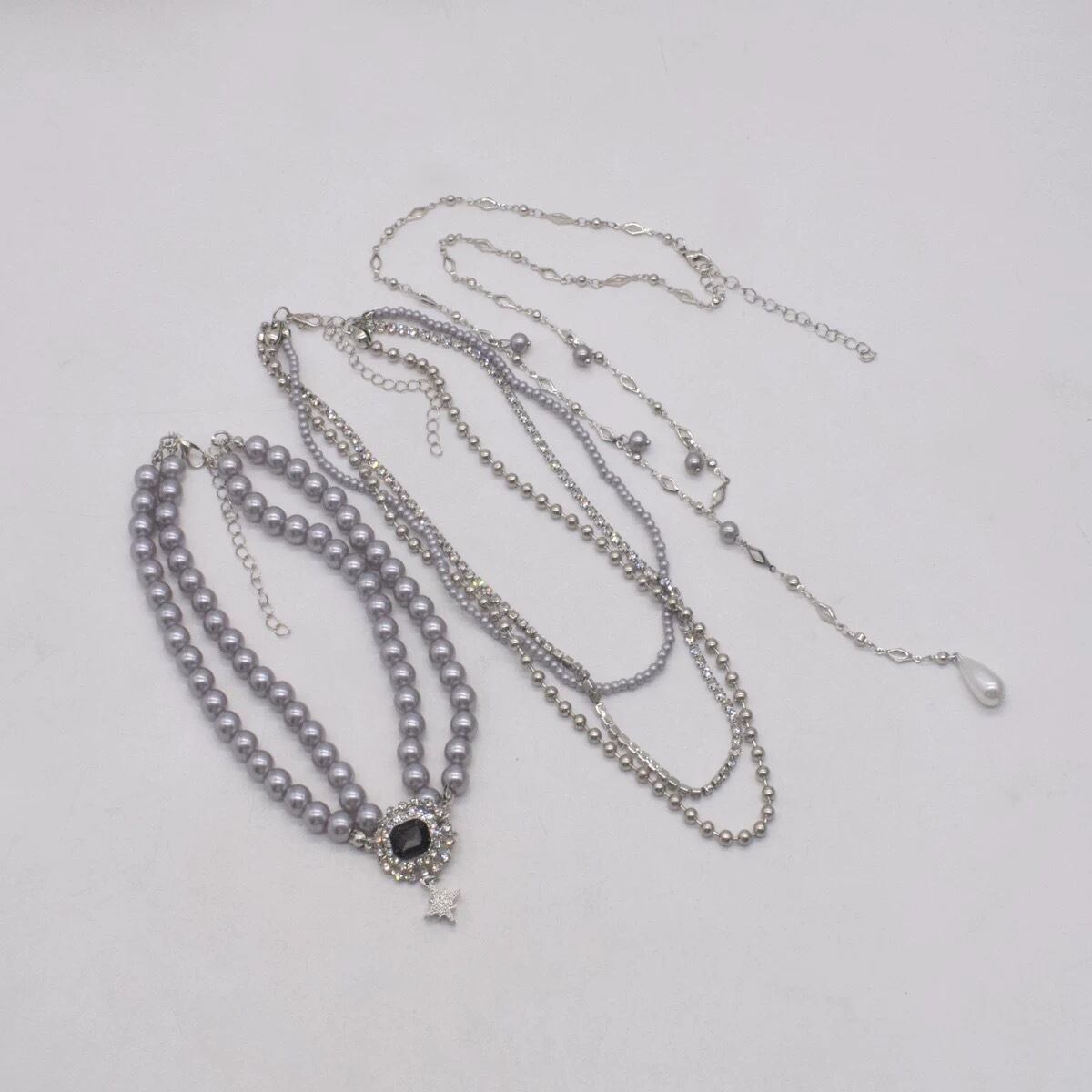 ## 新作!【大人気】2025年新作グレーパールマルチレイヤータッセルネックレスレディースニッチハイエンドダイヤモンドティアドロップスタックセーターチェーン
