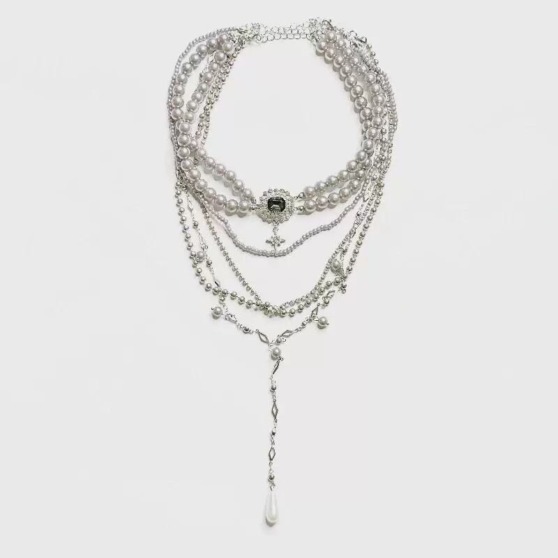 このネックレスは、グレーパールやダイヤモンドティアドロップデザインを取り入れた独自のスタイルが特徴です!高品質な素材が使用されており、軽やかでありながら豪華な装着感を提供します。マルチレイヤーの設計により、様々なファッションスタイルに合わせやすく、印象的なアクセントをプラスします。