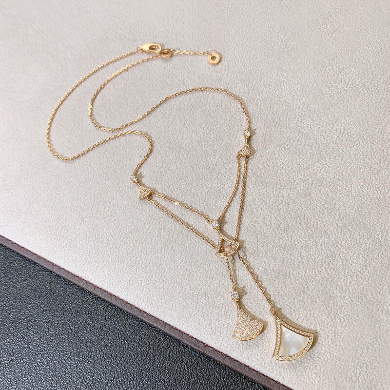 ## 新作!【人気】ヨーロッパとアメリカの国境を越えたマルチファン 二重層スカートネックレス、18Kローズゴールドライトでメッキ、高級オールマッチホワイトシェルタッセル鎖骨ネックレス、女性用
