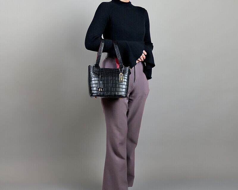 小さいサイズでも抜群の存在感を放つクロコダイルバッグはいつものコーデに合わせて持ちだけで品格が上がります。