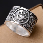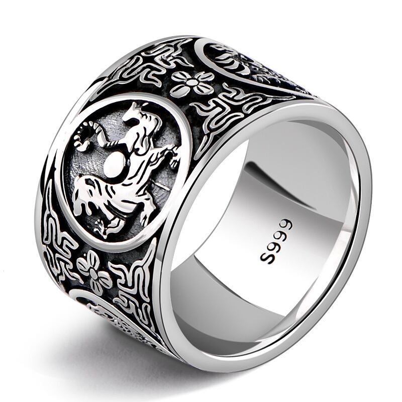 ## 【おすすめ】S999足銀純銀四大神獣指環指輪ワイド版