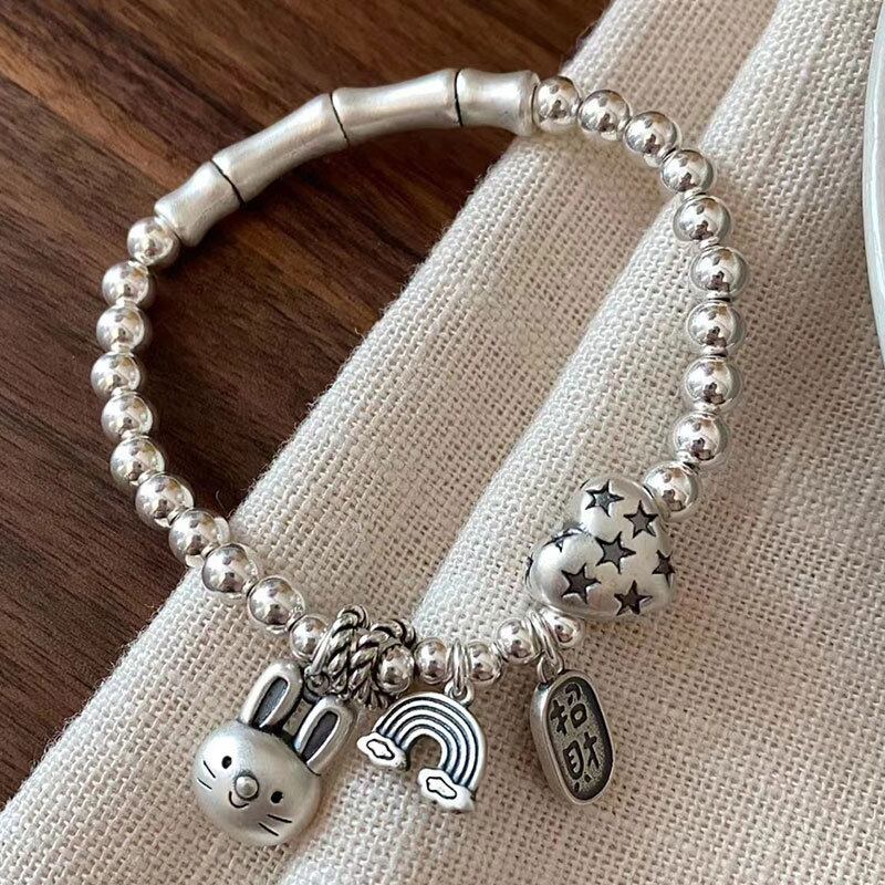 *女性向けにデザインされたこのブレスレットは、愛らしいウサギのチャームが特徴です。