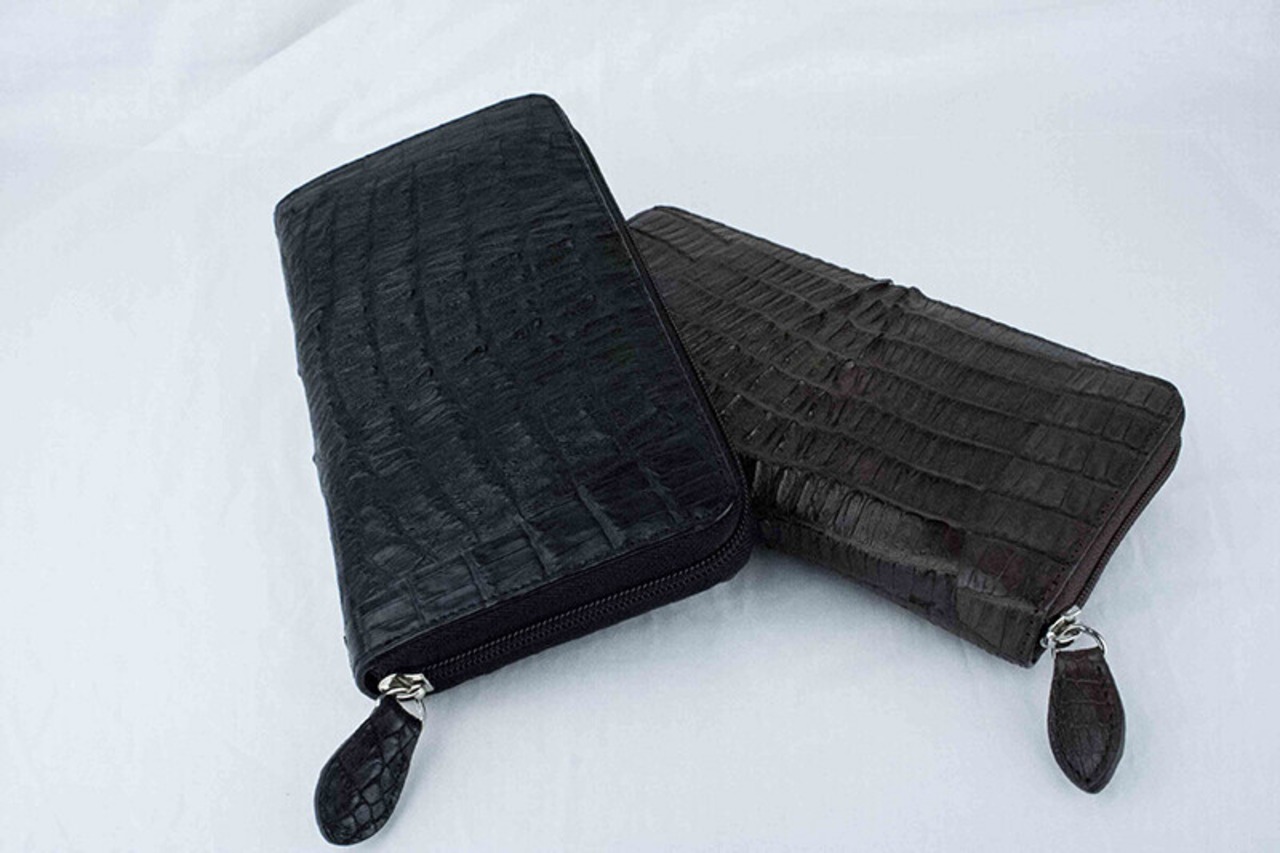 財布表面のファスナーの引き手もカイマン革を使い、とことんこだわり抜いた逸品です。