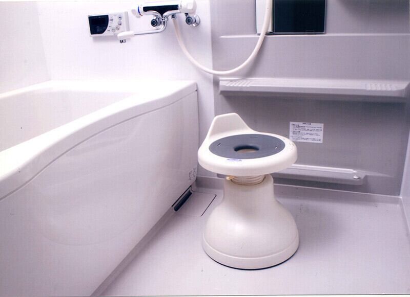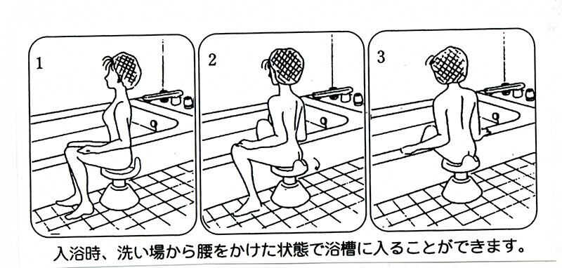 *入浴時、座ったまま椅子が回転しますので、イスに腰かけた状態で浴槽による浴室用便利椅子なので風呂場でのスベリによるケガを防止!