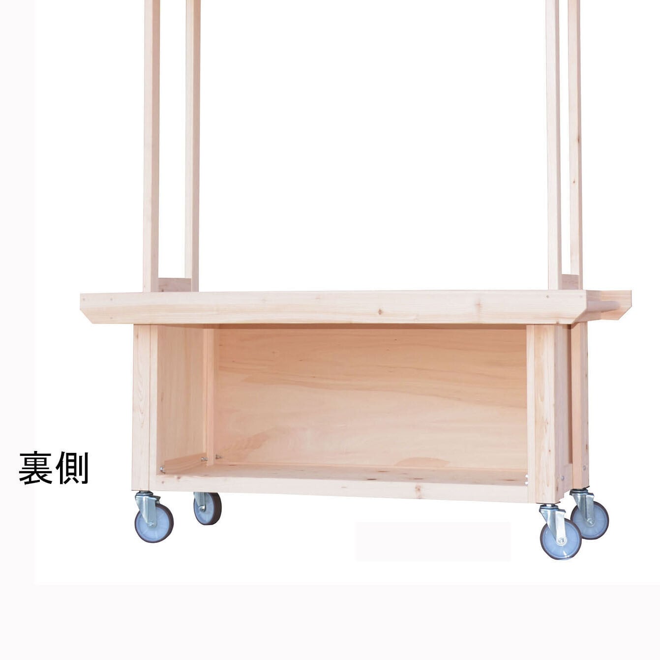 国産材ひのきを主材とした、ボルト組立式のコンパクト収納式販売台です。