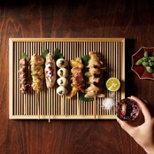 ひのきの繊細な糸格子の上に硝子を敷き、