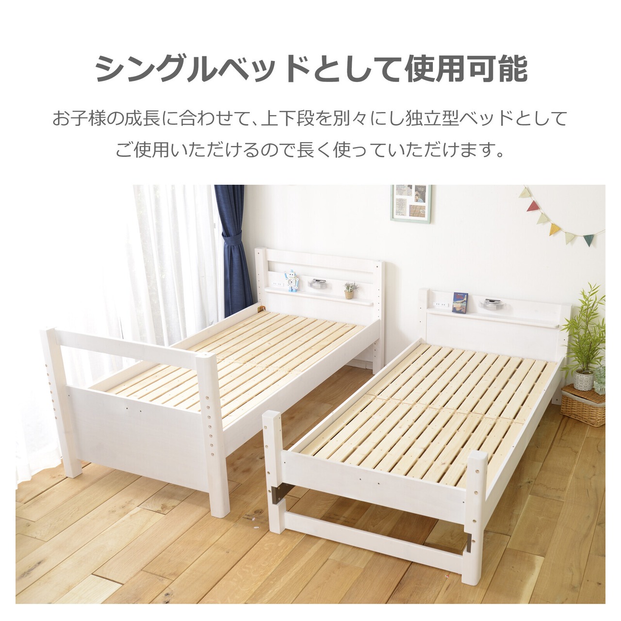 上段と下段をバラしてシングルベッドとしてもお使いいただけます。