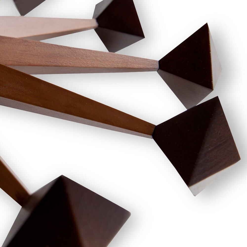 ジョージネルソンデザインの「ポリゴンクロック」は、ウッド材にダークラッカー塗装を施した重厚感のある仕上げです。印象的なデザインがお部屋の中で存在感を放ちます。様々な素材使いや彫刻的なフォルムで人々を魅了するネルソンクロックは、時代を超えて愛され続ける名作です。