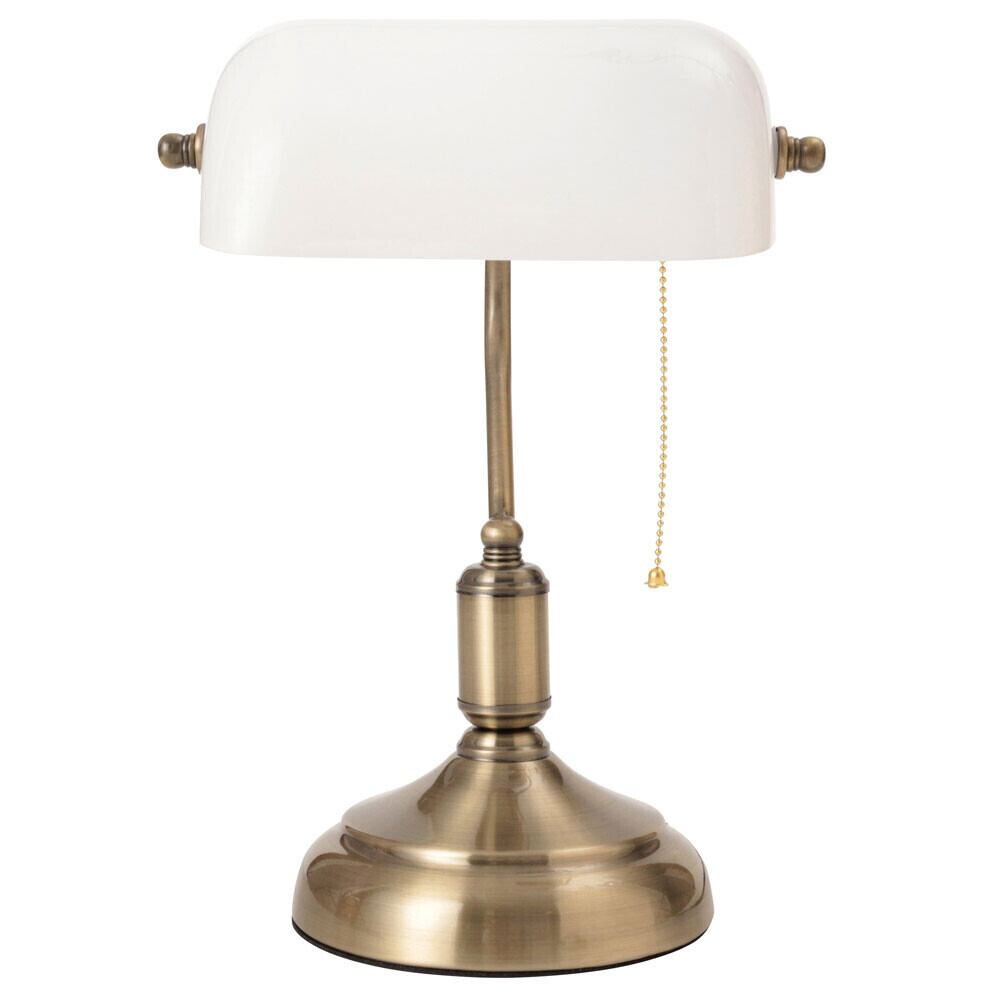 アメリカの映画などでよく映っているバンカーズランプです。欧米の公立図書館の机にもよく設置されています。バンカーズ(BANKers)ランプという名前は主に銀行で用いられることが多く、その由来からその名の通り「銀行家のランプ」という名前がついたようです。当時のデザインを忠実に再現する為、ボールチェーンの先端はすずらんの形になっており細部までこだわったデザインになります。その魅力は古き良き時代の温かみを感じるフォルムによって長い時代、様々な業種の方に愛され続けてきました。バンカーズランプの普遍的なデザインは、シェードから放たれる淡い光りはアイアン製で無機質なシンプルなデザインと相まってテーブルを演出してくれる照明として今なお残る名作照明です。